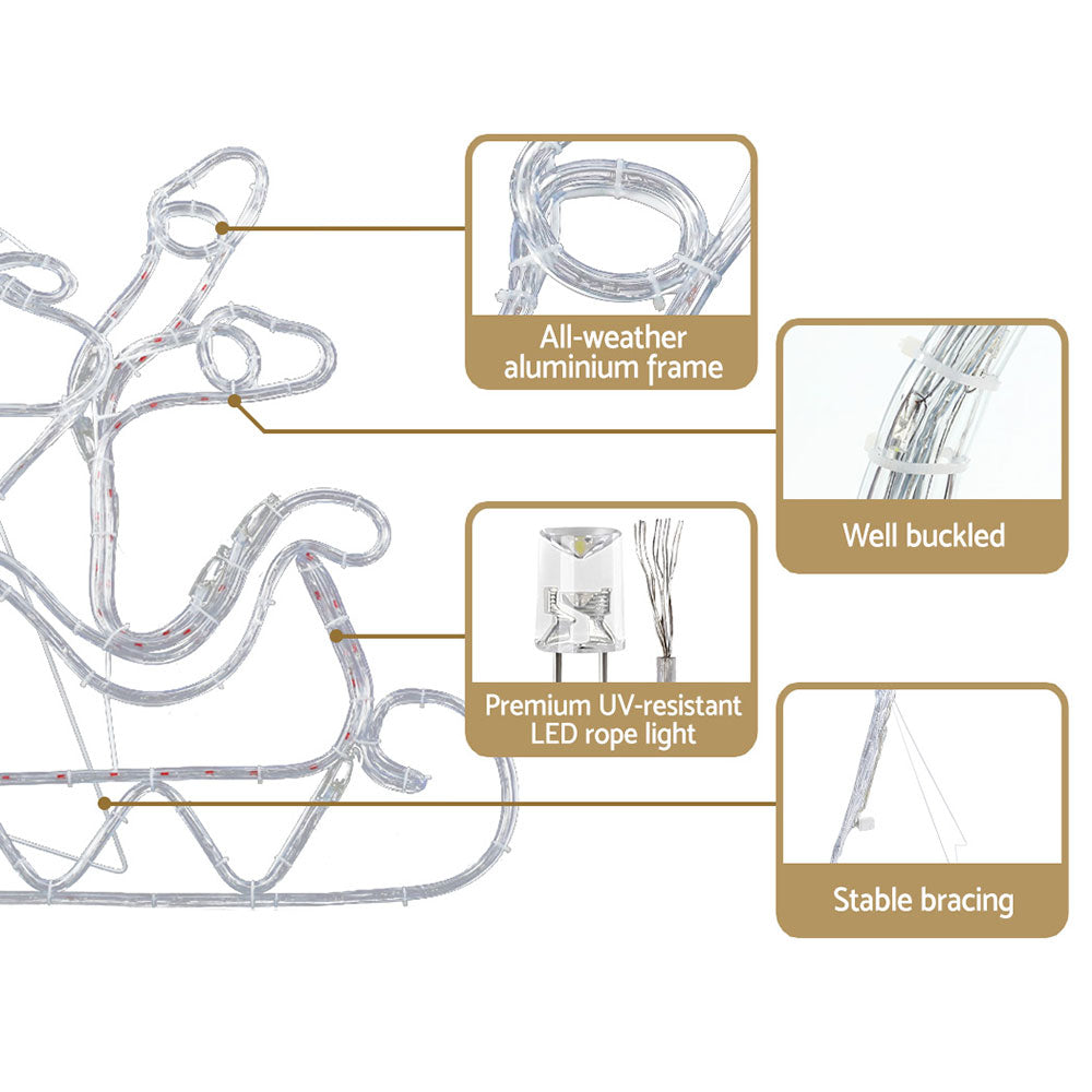 Turn your place into Santa’s landing strip with this dazzling Santa and reindeer sleigh light display! Perfect for front yards, back decks, or anywhere you want to spread some serious Christmas cheer, these ultra-bright multi-coloured LEDs are built to shine all season long.